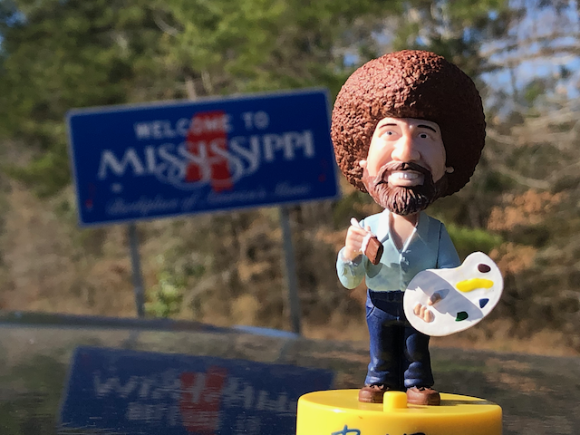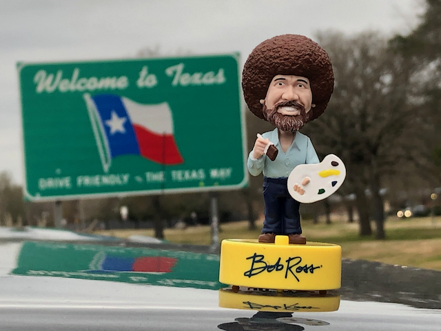 I got carried away and drove to Texas today. I am still not due to the BnB until tomorrow so I am sitting in a hotel enjoying my first Texas Taqueria tacos. Yum!!! My favorite traveling companion Bob Ross is here and is as tired as I am.