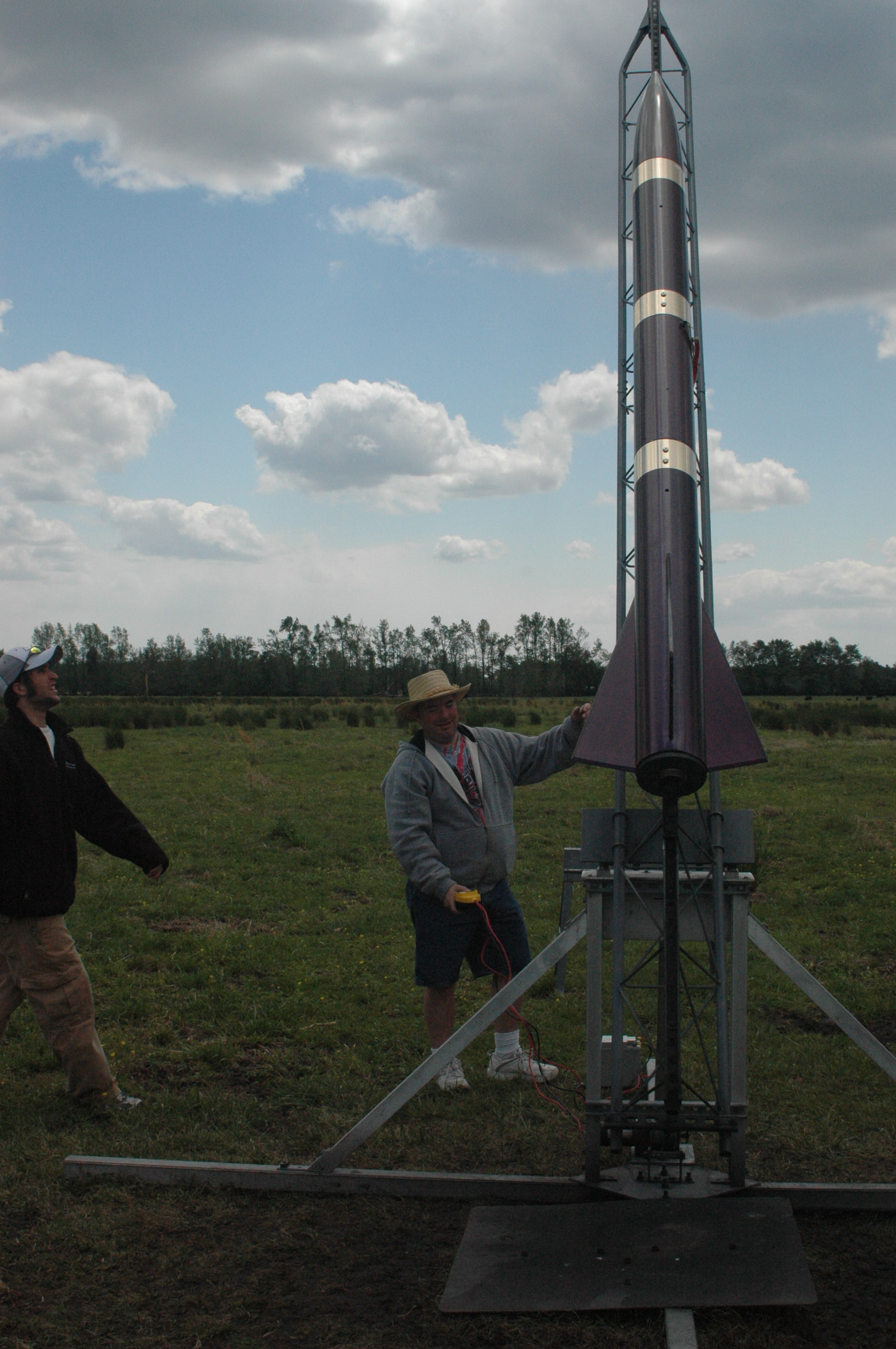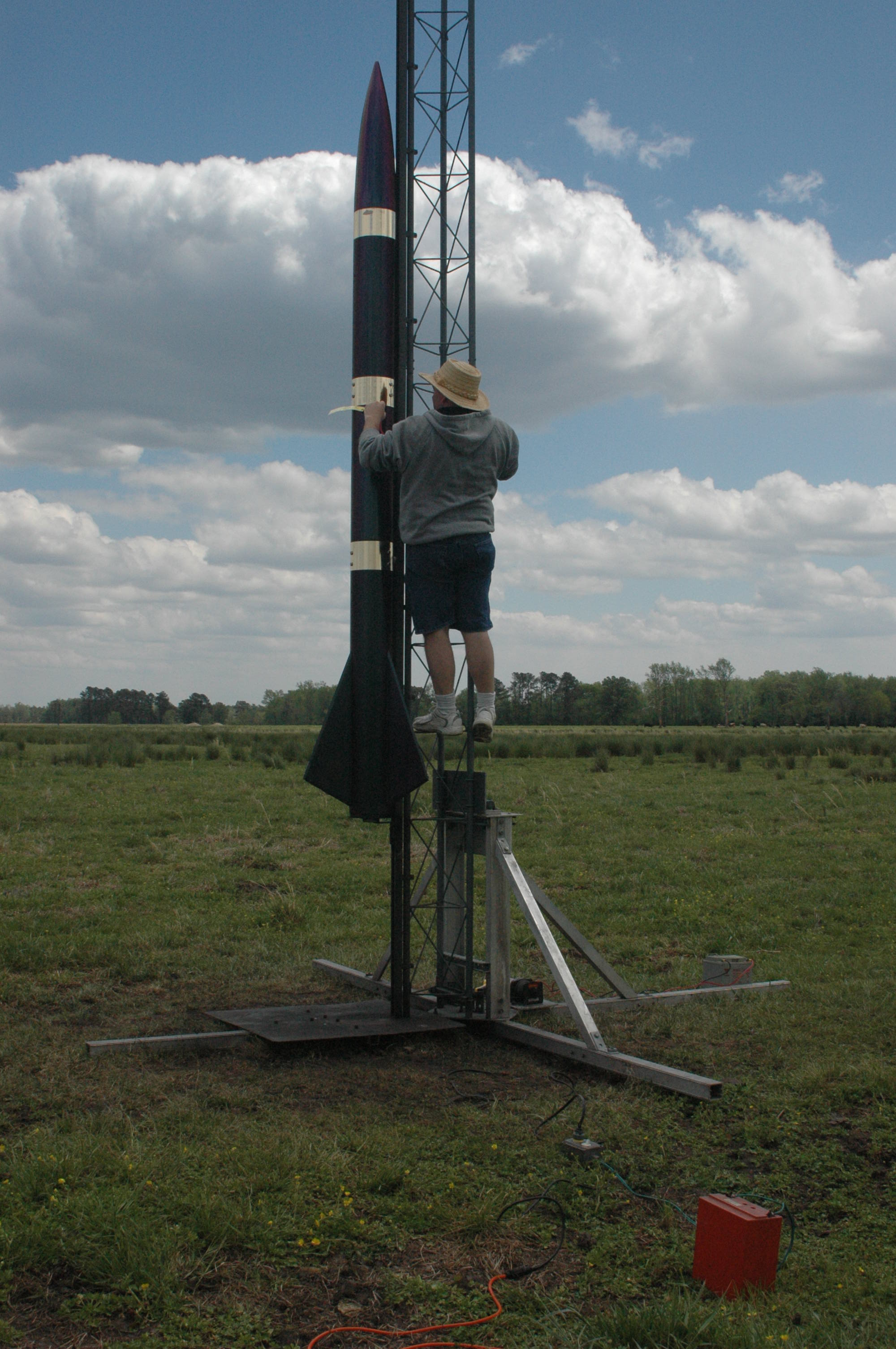 In 2005, when I had more money than sense I built a level 3 rocket. In the model rocket industry there were many levels of rockets and the industry was self policing with these levels. As an example, a person can’t launch a level 1 rocket until they have obtained a level 1 license. You can’t get to level 3 until you have a level 1 followed by a level 2. All this happened over 15 years ago so it may be different today, but, back in the day, in addition to licenses the achievement of a level 3 involved a long process of documentation, justification, review and observation. And why shouldn’t it be tough? The level 3 license is the highest achievement a model rocketeer can achieve. As you can see by the pics, the level 3 packs a huge punch. The pics here represent my level 3 certification finale. The end requirement of this year long process is that the rocket launches and can be successfully recovered and be re-launchable. Needless to say, I achieved my level 3. : )
